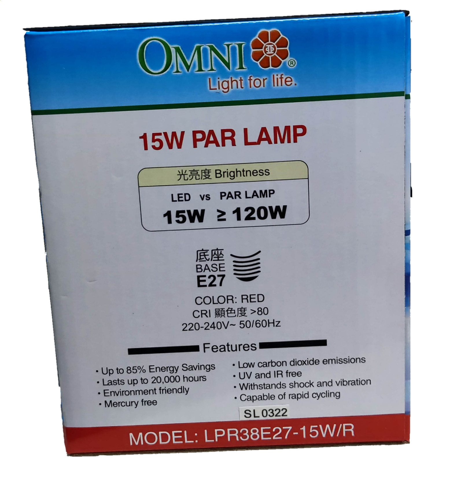 Omni 15W PAR 38 E27 220V AC Red LPR38E27-15W/R, LED PAR 38 15W E27 220V Red
