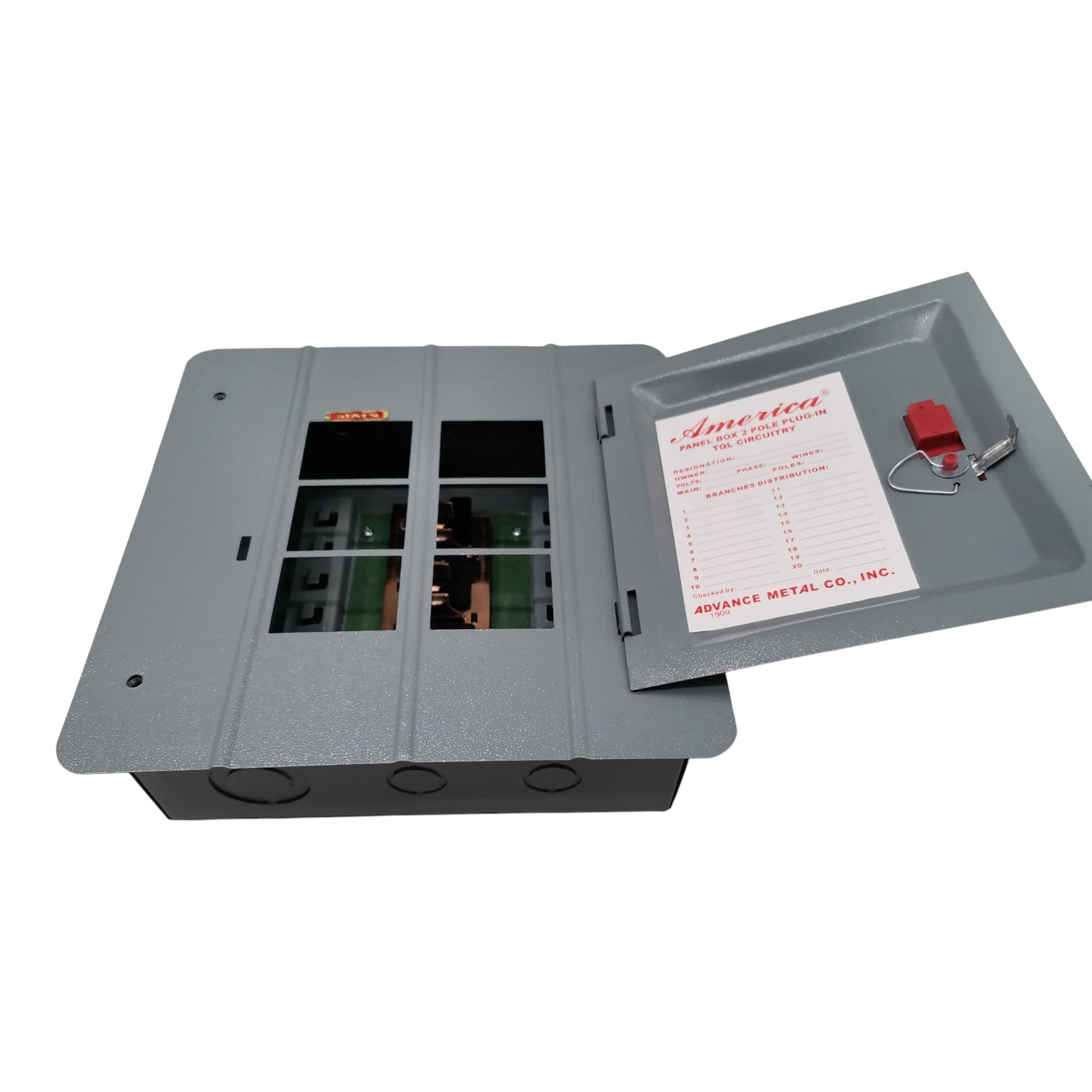 America 3X3 Panel Board 6 Holes Distribution Panel for 2 Pole Plug in Circuit Breaker 4 Branches