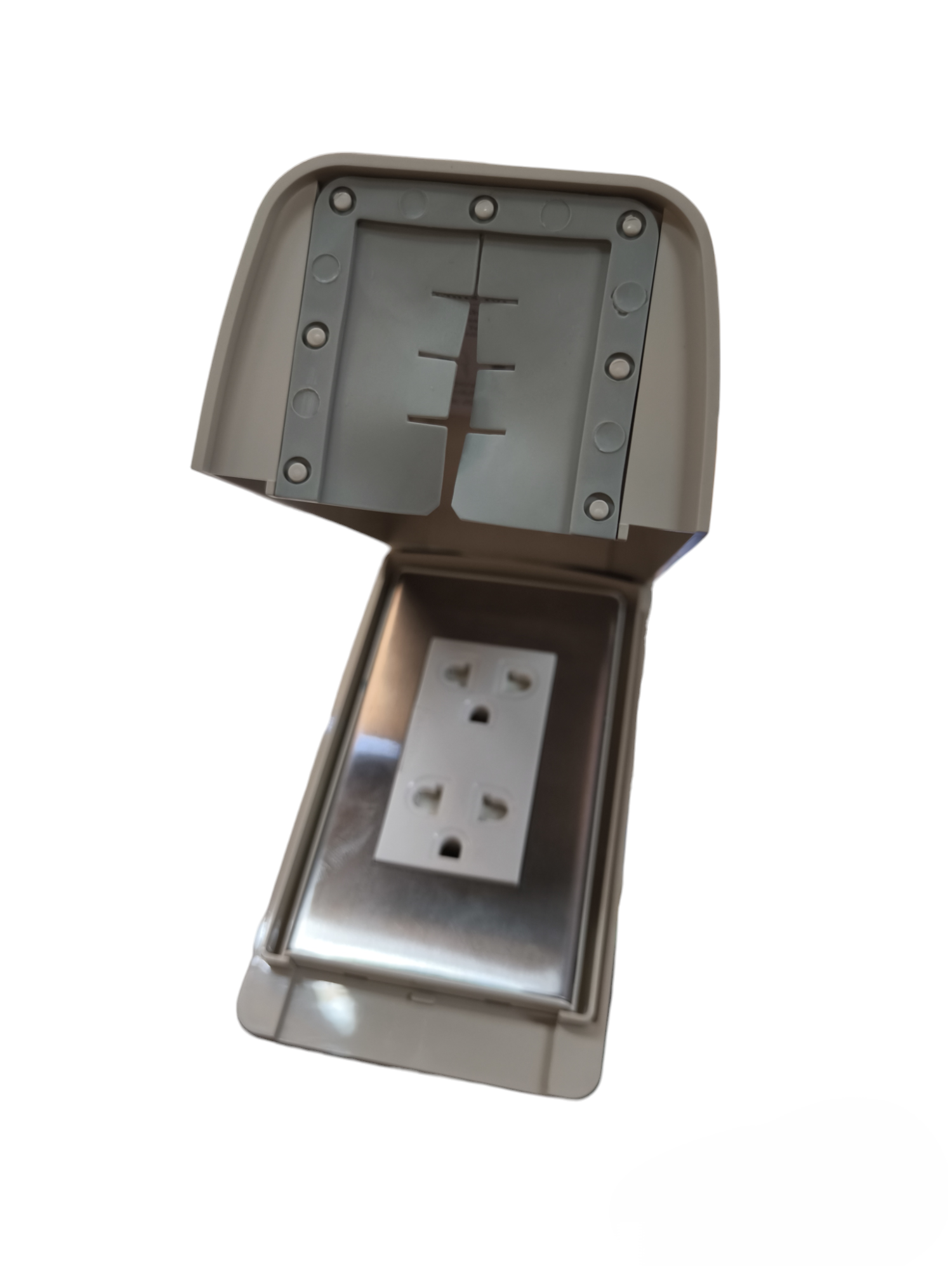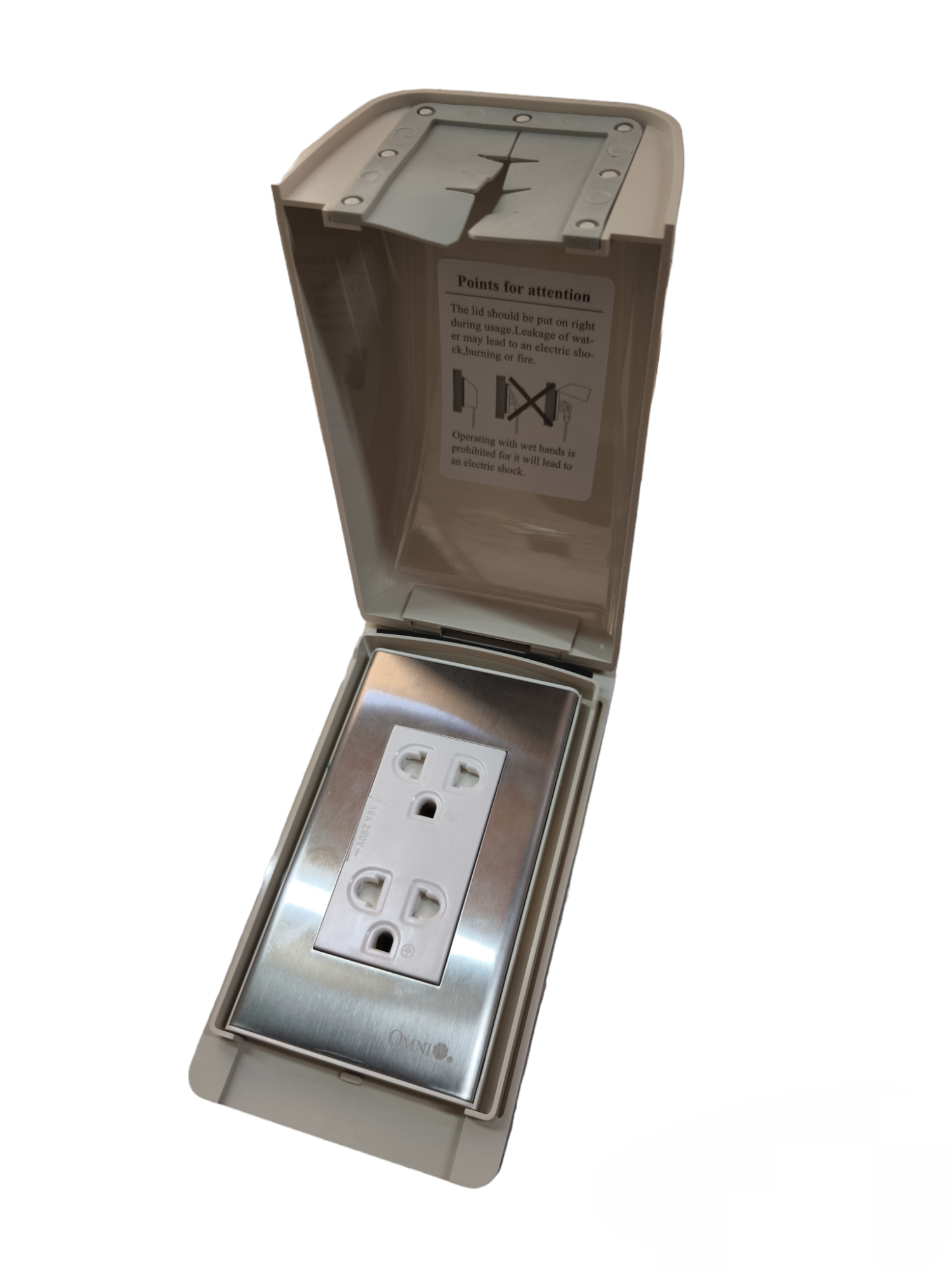Omni Weatherproof Duplex Universal Outlet 16A 250V with Stainless Plate Cover WPP-601+WWP-113S+WWG-402